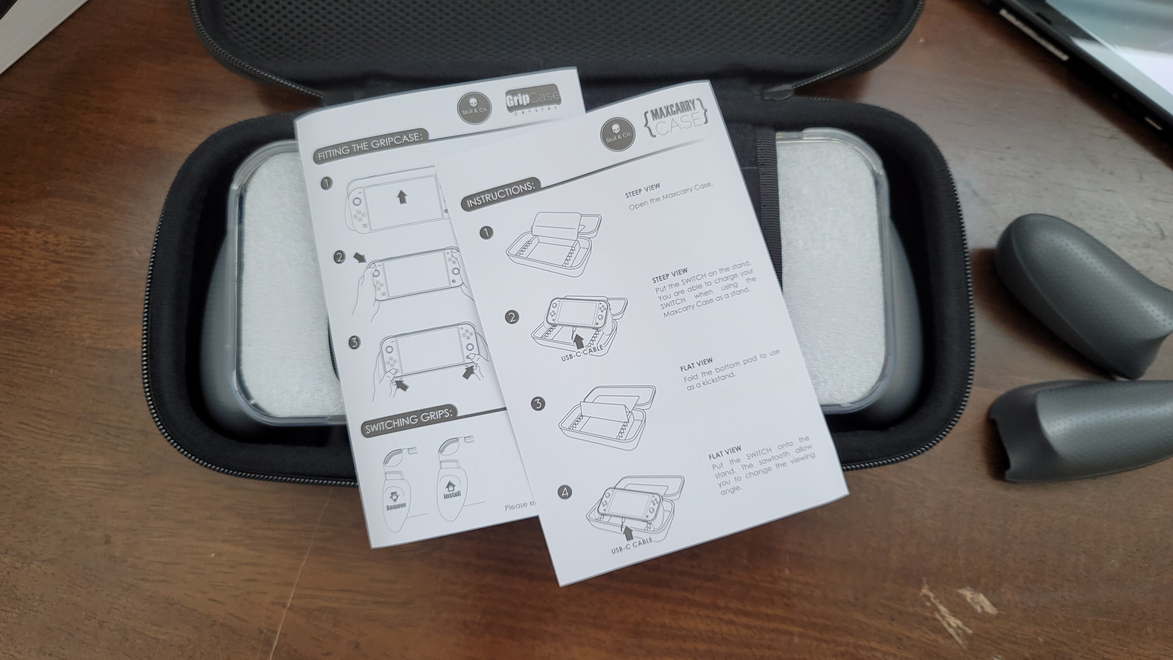가방을 열어보면 제일 먼저 보이는 건 사용설명서입니다. 케이스를 어떻게 사용하는지, 그립 케이스는 어떻게 끼우는지, 그립 부분 교체는 어떻게 하는지, 그림으로 설명되어 있었습니다.