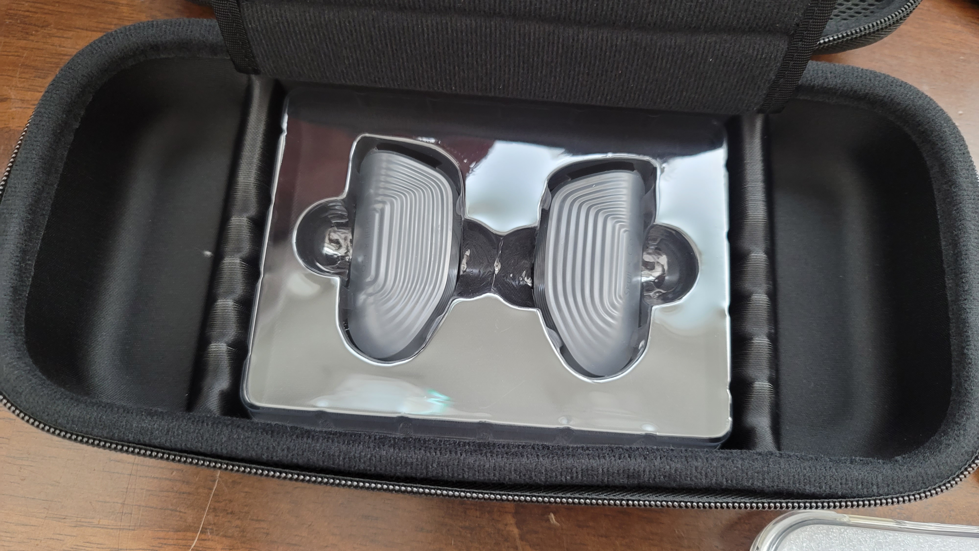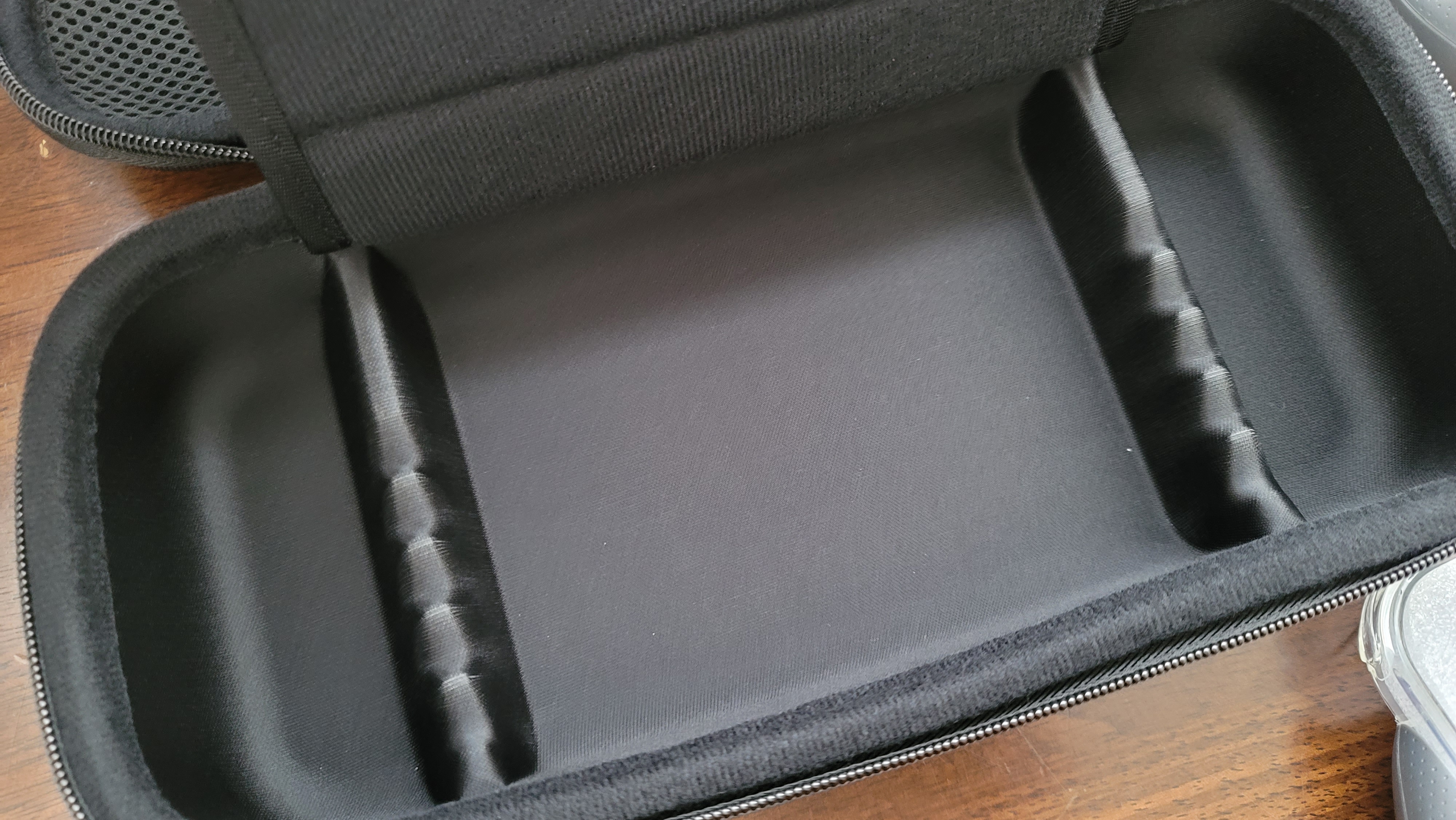 박스 안에는 닌텐도 스위치 가방과 그레이 컬러의 그립 한쌍이 들어있습니다. 새까만 블랙 컬러의 가방이 사진에는 좀 밝게 나와서 얼룩덜룩(?) 해 보이는데 실제로 보면 사진보다 고급스러워 보이기도 합니다. 집에 있는 휴대용 마이크가 들어있는 가방 같기도 합니다.