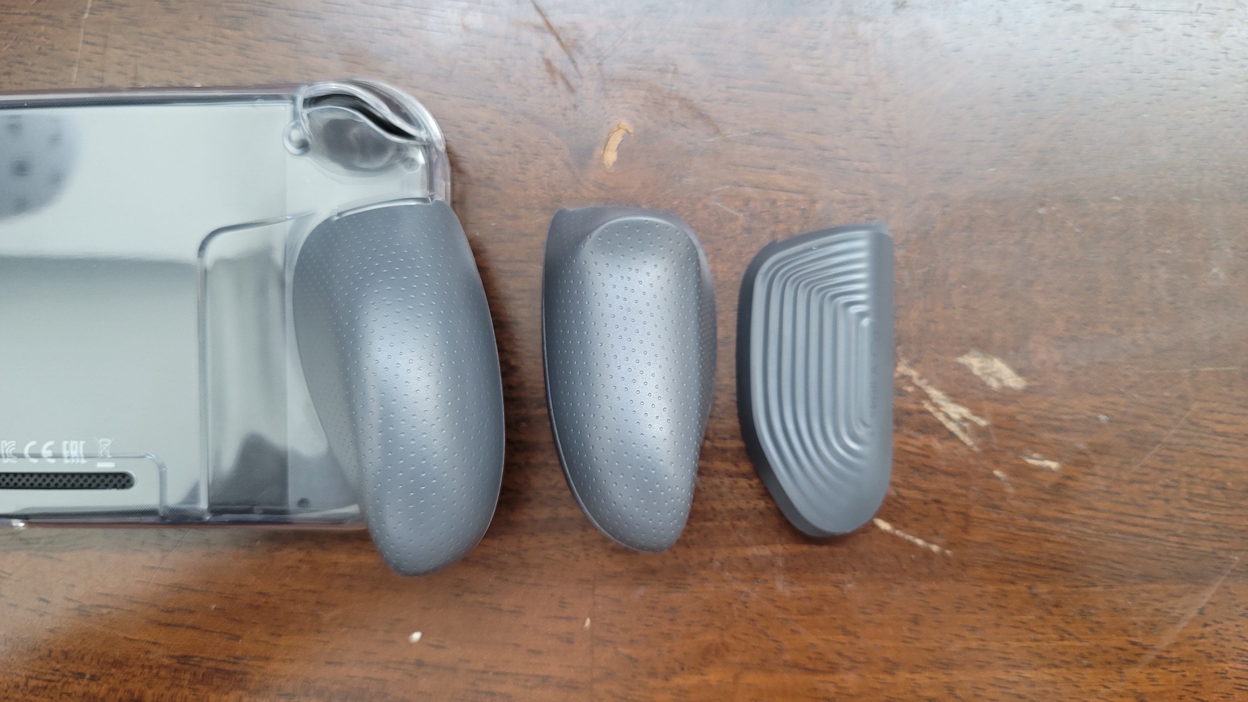 원래 끼워져 있는 게 플러스 그립, 가운데 있는 게 트리거 그립, 제일 오른쪽에 있는 게 스냅 그립 이렇게 그립이 3종류라서 손에 맞는 걸 갈아 끼워서 사용하면 될 것 같습니다. 오른손은 플러스 그립, 왼손은 트리거 그립 이런 식으로 조합도 가능합니다.