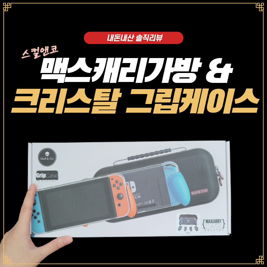 원래 닌텐도 스위치 라이트 옐로를 사용하다가 이번에 저의 짐들이 공방으로 이사 나오게 되었습니다. 그러면서 휴대용 스위치가 필요 없어져서 요즘 한창 마리오 종이 접기에 빠진 엄마의 기계와 바꾸게 되었습니다. 엄마가 사용하던 닌텐도 스위치는 기존에 쓰던 그립 케이스도 있었지만, 음량 버튼을 누르면 전원 버튼이 눌리는 굉장히 불편한 케이스였습니다. 그래서 젤리 타입으로 된 그립 케이스를 바꾸려고 알아보다가 스컬 앤코 맥스 캐리 케이스와 그립 케이스가 함께 들어있는 세트 구성상품으로 구매하게 되었습니다.