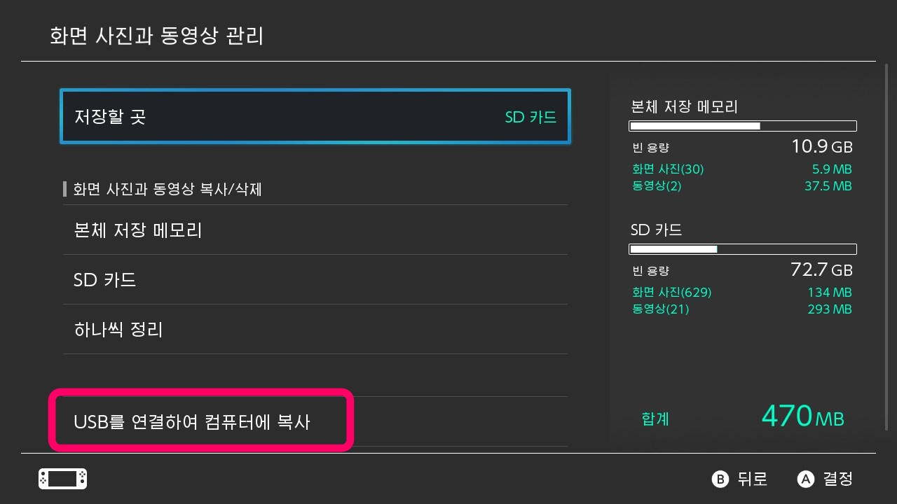 준비물 : 닌텐도와 컴퓨터를 이어 줄 C타입 케이블