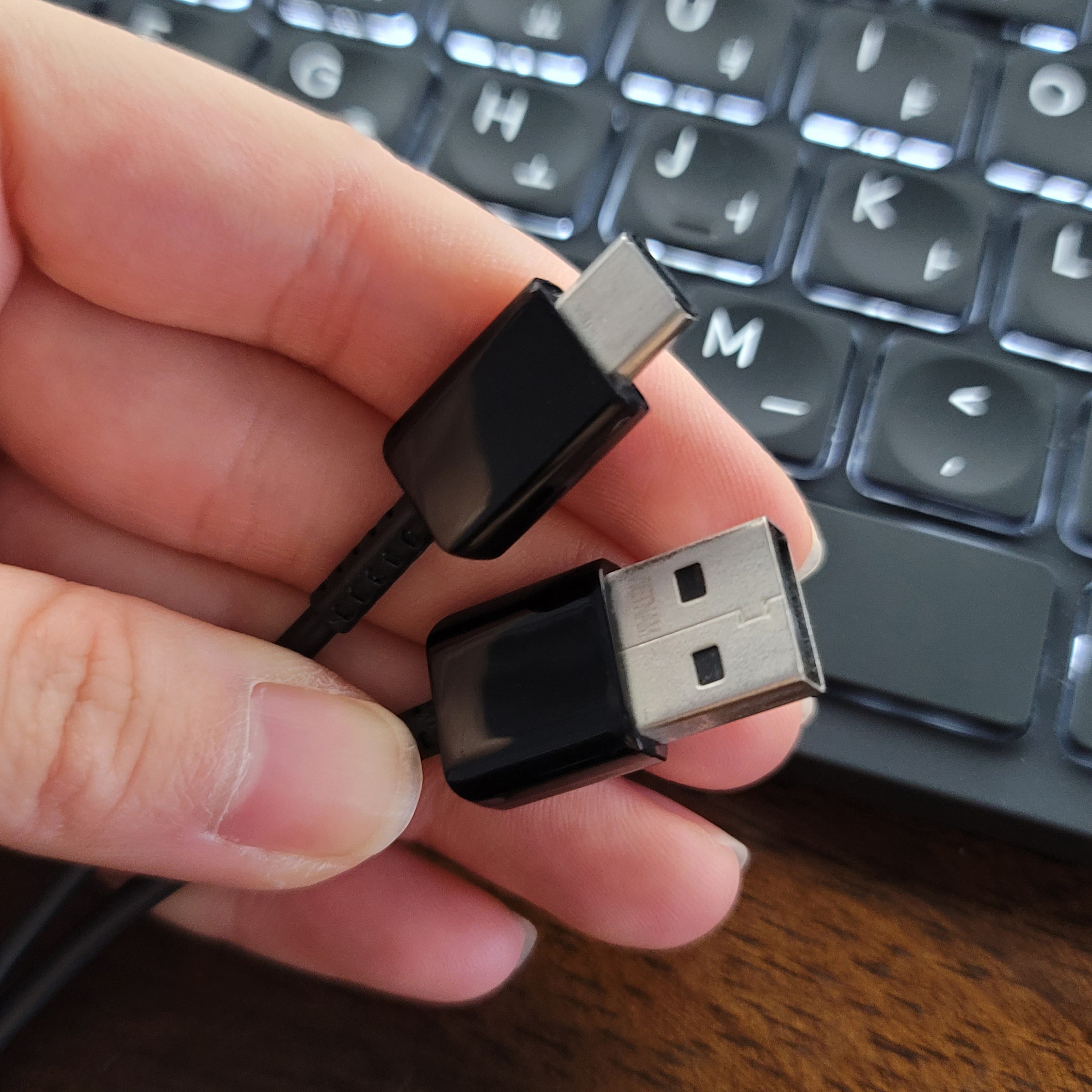 한쪽은 닌텐도 스위치에 연결하는 C타입, 다른 한쪽은 컴퓨터에 연결하는 USB로 된 형식의 케이블을 준비했습니다. 그리고 각각 기계에 꽂아주시면 됩니다.
