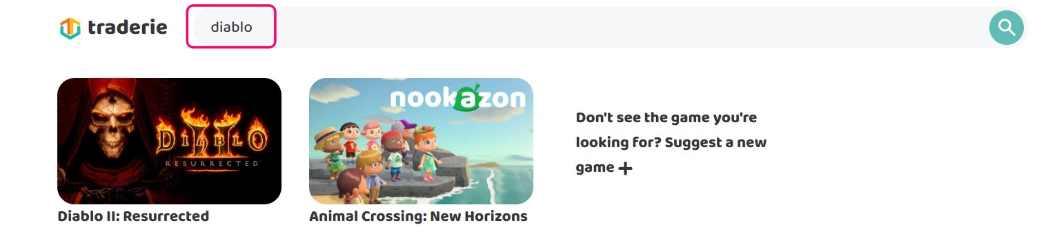 트레더리 사이트에 접속하면 많은 게임들이 나열되어 있는데요. 그중에서 디아블로 2 레저렉션을 선택해주세요. 혹시라도 디아블로2가 바로 보이지 않는 분들은 트레더리 검색창에서 diablo만 입력하셔도 찾을 수 있으니 당황하지 않으셔도 돼요.