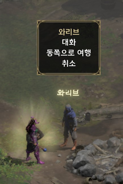안다리엘을 처치 후 와리브에게 말을 걸면 [동쪽으로 여행]이라고 뜨는데, 이것을 클릭하면 액트 2 루트 골레인으로 이동하게 됩니다.