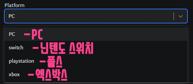 [Platform] : 디아블로 2 레저렉션은 다양한 게임기에서 즐길 수 있기 때문에, 자신이 게임 플레이하는 곳을 선택해 주시면 됩니다. 저는 닌텐도 스위치로도 즐기긴 하지만 주로 PC를 사용하기 때문에 PC를 선택해 주었습니다.