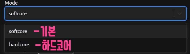 [Mode] : 디아블로 2 레저렉션에 있는 하드코어 때문에 있는 거라고 보시면 됩니다. 죽었을 때 캐릭터가 삭제된다면 하드코어, 아니면 softcore입니다.