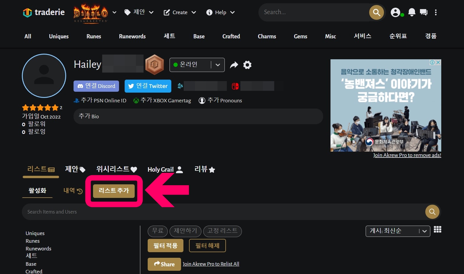 디아블로 2 레저렉션 트레더리(traderie) 해외 거래 사이트 회원가입부터 기본 설정까지