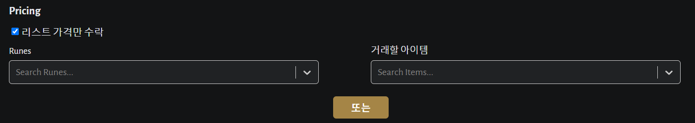 리스트 가격만 수락한다고 체크하면 제안하기는 없어지고, 제안 요청하기를 체크하면 룬과 아이템이 있는 부분이 없어집니다. 굉장히 좋은 아이템이라고 한다면 리스트 가격만 수락하거나, 또는 어느 룬 정도 기준을 잡아두고 제안을 받는 것도 좋은 방법입니다.