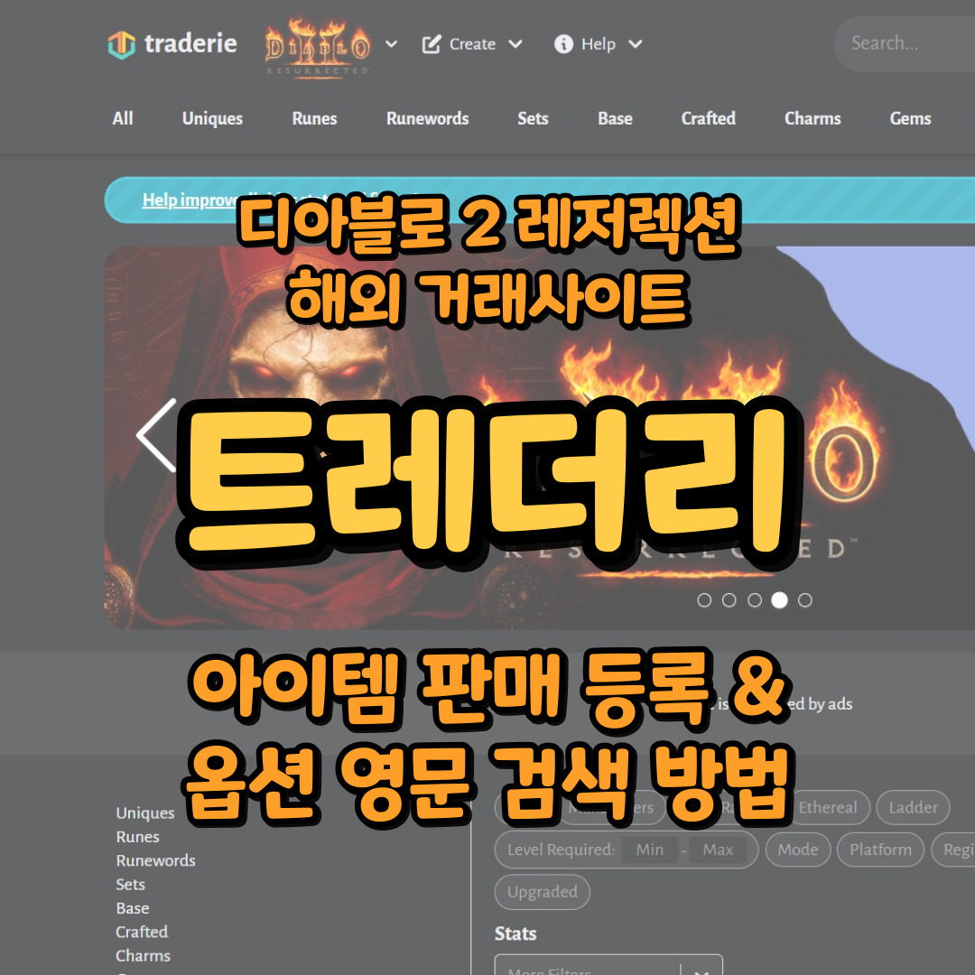 지난번엔 디아블로 2 레저렉션 아이템 거래 사이트인 트레더리(traderie)의 회원가입과 기본 설정에 대해서 정리해 보았습니다. 트레더리 회원가입과 한글 설정은 아래 링크의 글을 확인해 주시면 됩니다.