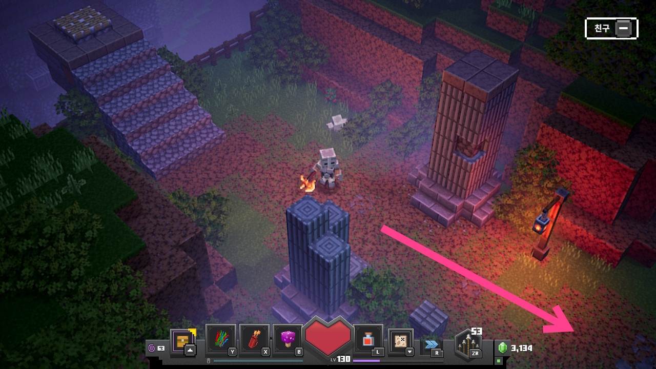 그런데, 마인크래프트 던전스에도 카우방이 있다는 얘기를 듣고 고인물 지인을 통해 몇번 가보고 나니 신세계더라구요! 레벨이 아주 쭉쭉 오르고 유일템도 잘 나오구요!! 지인과 몇번 같이 돌다보니 혼자서 할 때도 카우방을 가보고 싶어서 카우방 여는 방법을 배웠답니다. 그 중에서도 이번에는 카우방을 열기위해 제일 먼저 찾아야 하는 교회부터 찾아볼게요. 천천히 따라오세요