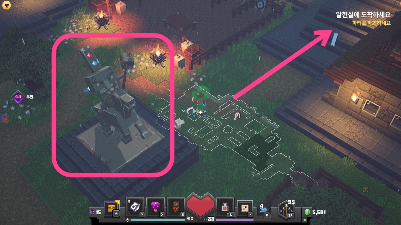 마인크래프트 던전스 카우방 여는법 - 룬 찾기