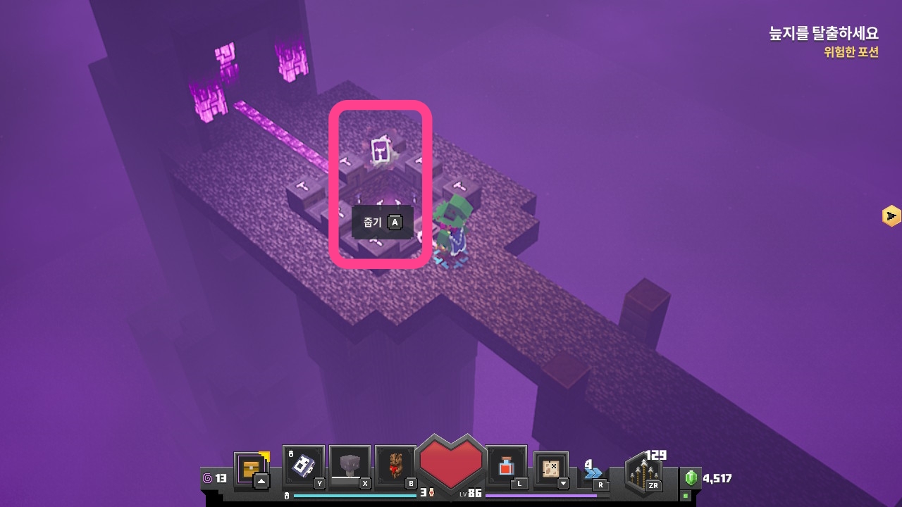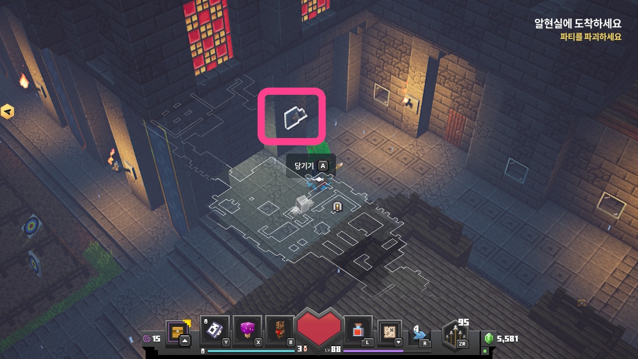 문을 열고 들어가서 처음과 같은 방식으로 버튼을 눌러 룬을 꺼내고 주워줍니다.