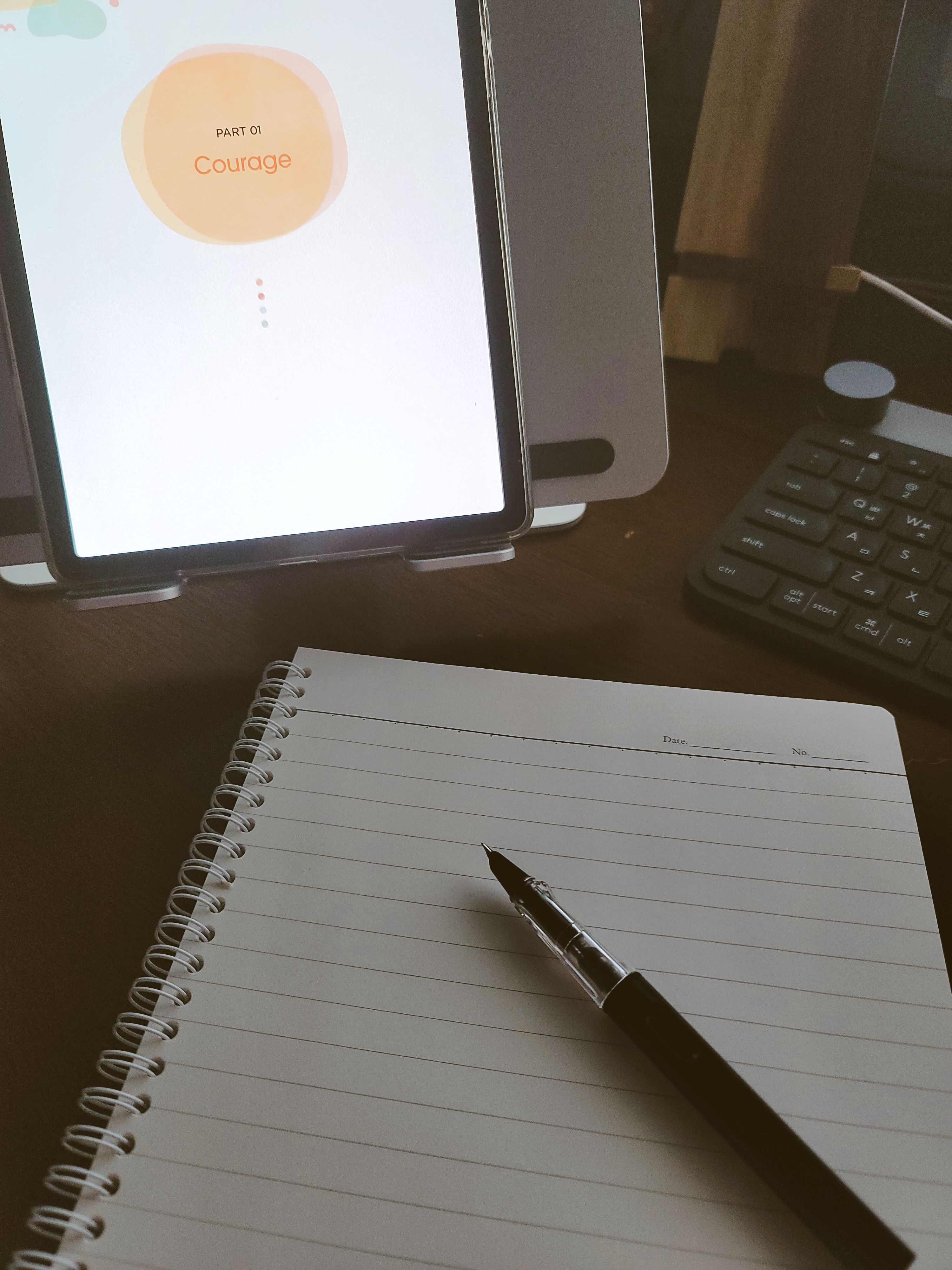저는 밀리의 서재를 통해 책을 읽고 있기 때문에 책을 읽을 때 사용하는 갤럭시 탭 S6를 옆에 두고 써보았습니다. 평소에 메모를 하거나 공부를 할 때 자주 사용하는 펜으로 필사를 해봤답니다. 영어 필사 100일의 기적 책은 Courage, Love, Happiness, Intention, Youness, Goals, Patience, Freedom, Growth, Power 총 10 파트로 구성이 되어있습니다. 파트별로 10개 정도의 필사를 위한 글들이 들어있습니다. 글들은 무료로 제공되는 원어민 MP3로 발음을 어디서나 수시로 들을 수 있어서 공부하기에도 좋은 것 같습니다.