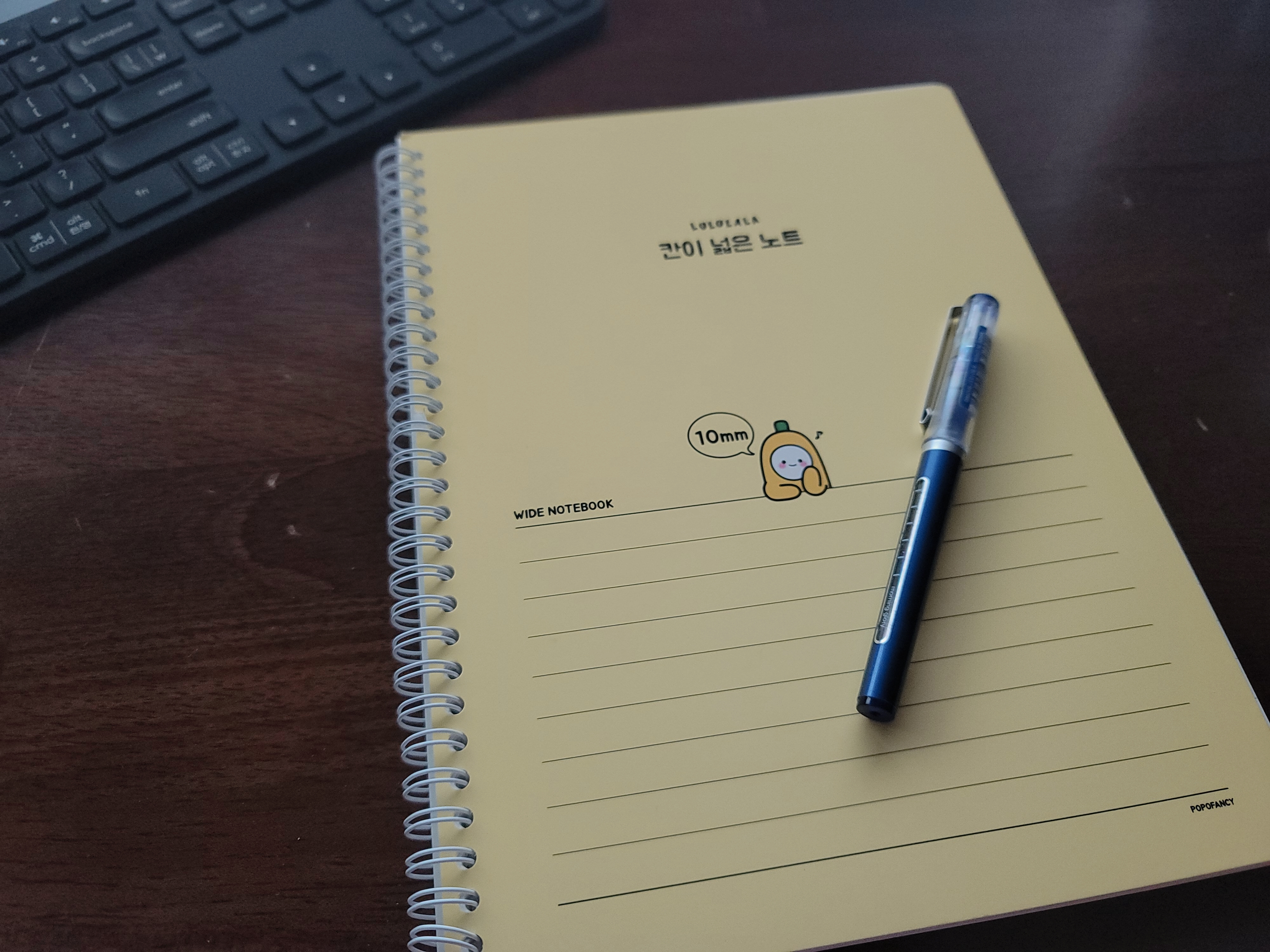 글자를 너무 작게 쓰지 않도록 칸이 넓은 노트를 준비해 조금씩 써 내려갔습니다. 생각보다 많지 않은 분량이라 금방 쓸 수 있었습니다.