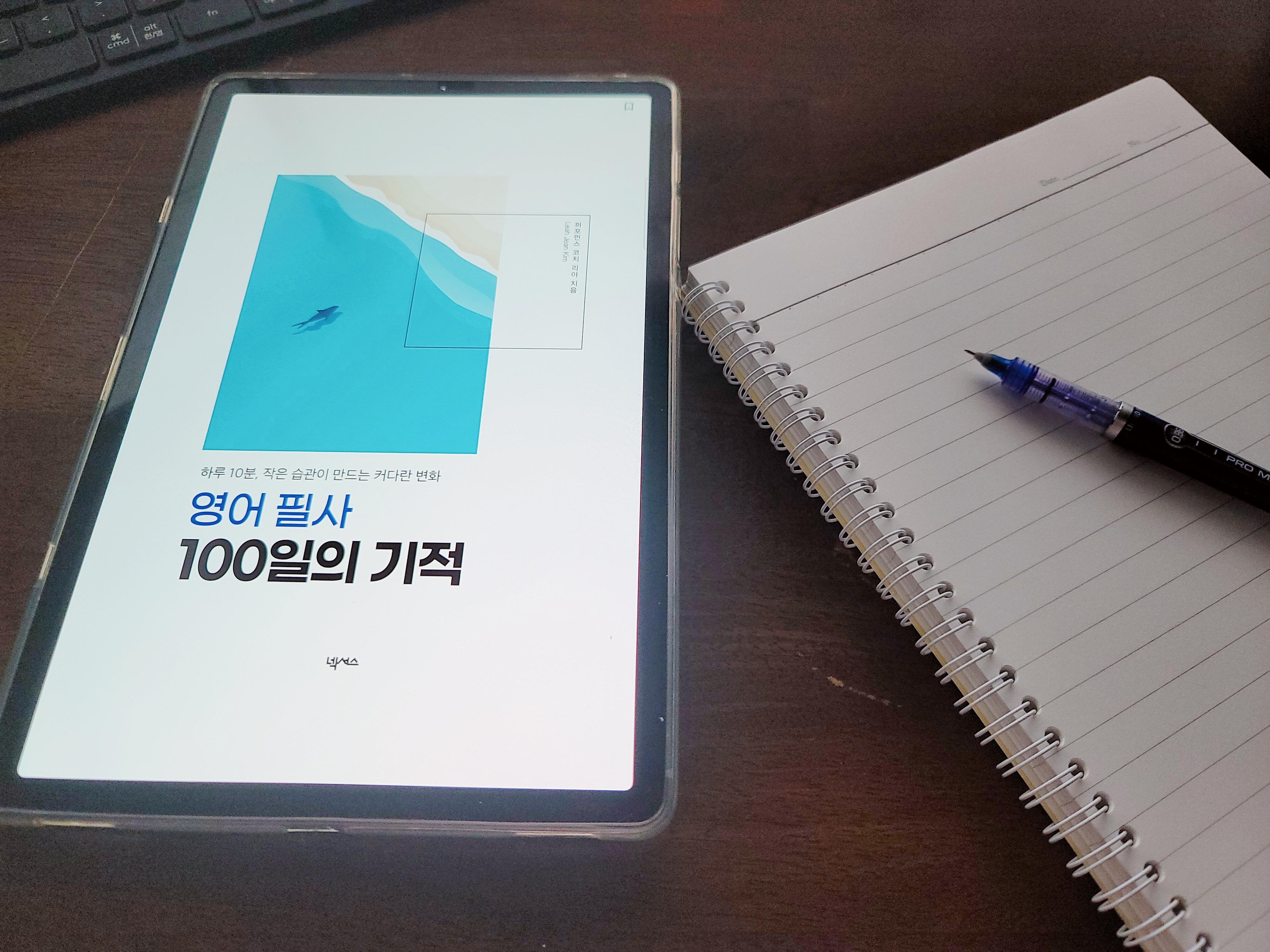 밀리의 서재 앱으로 책을 읽다가 그동안 계속 미뤄온 영어공부를 어떻게 재미있게 할까 생각을 들었습니다. 항상 공부를 책으로 하다 보니 금방 재미를 잃고 하지 않게 되는 경우가 많습니다. 그래서 그런지 뭔가 다른 방법이 없을까 하는 생각이 들어 영어공부 책을 검색해 보다가 "영어 필사 100일의 기적"이라는 책을 발견했습니다. 평소에 글씨 쓰고 끄적거리며 낙서하는 것을 좋아하기 때문에 저에게 딱 맞는 거라는 생각이 들어서 얼른 읽어보았습니다. 이 책을 쓴 작가님의 말씀이 저에게 와닿았습니다. 매일 꾸준히 따라 쓰는 것이 가장 좋기는 하지만, 사람마다 자신에게 가장 효과적인 방법은 다 다를 수 있기 때문에 무언가를 꾸준히 하는 것을 못한다고 자신은 의지력이 약하다고 책망하는 것보다, 본질적인 목적인 내 삶의 성장과 결과에 집중하자는 것입니다. '내 삶의 성장과 결과'라는 목적이 '매일 100일'이라는 수단보다 훨씬 중요하다고 생각을 바꾸려 노력했습니다. 그랬더니 마음이 한결 편해지면서 필사를 하는 것도, 영어공부를 하는 것도 부담이 되지 않게 되었습니다. 부담 없는 마음으로 아침이 아니라도, 아침에 시간이 없을 경우도 있잖아요? 내가 쓰고 싶은 시간에, 문득 생각이 났을 때, 그렇게 생각하고 하루하루 썼더니 작심삼일을 넘겼습니다.