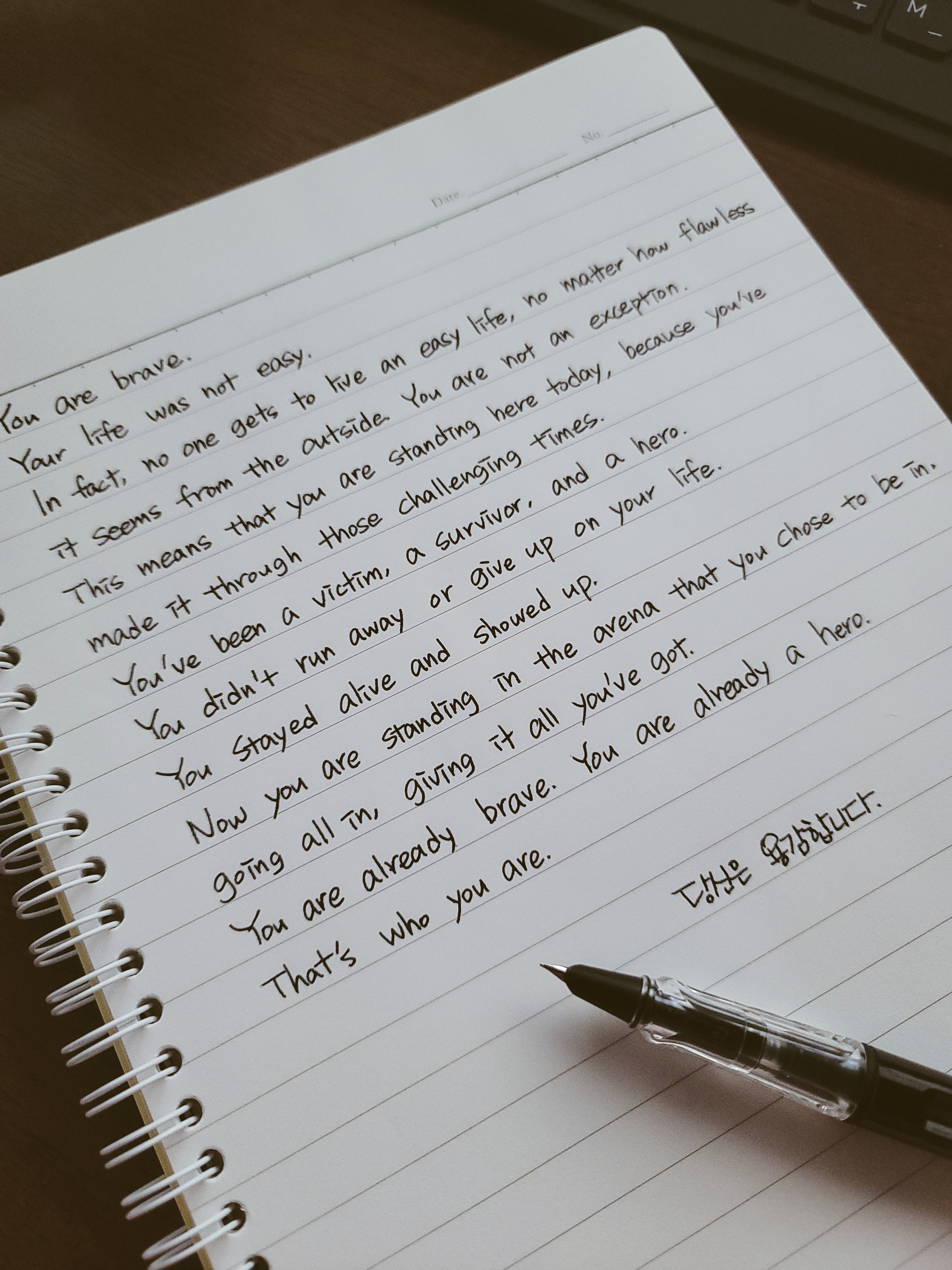 파란색 펜으로 썼지만, 다이소에서 구매했던 만년필로도 써보고 싶어 다시 한번 더 써보았습니다. 한 번을 쓰던, 두 번을 쓰던 쓰는 것은 쓰는 이의 마음대로이기 때문입니다. 이렇게 손으로 직접 쓰면서 느낀 점은 그동안 메신저로는 자동완성이 되기 때문에 눈으로는 알지만 직접 쓰려면 이게 맞는지 헷갈렸던 부분이 간혹 있었는데 그런 점이 조금씩 바뀌는 것 같다는 느낌이 들었습니다.