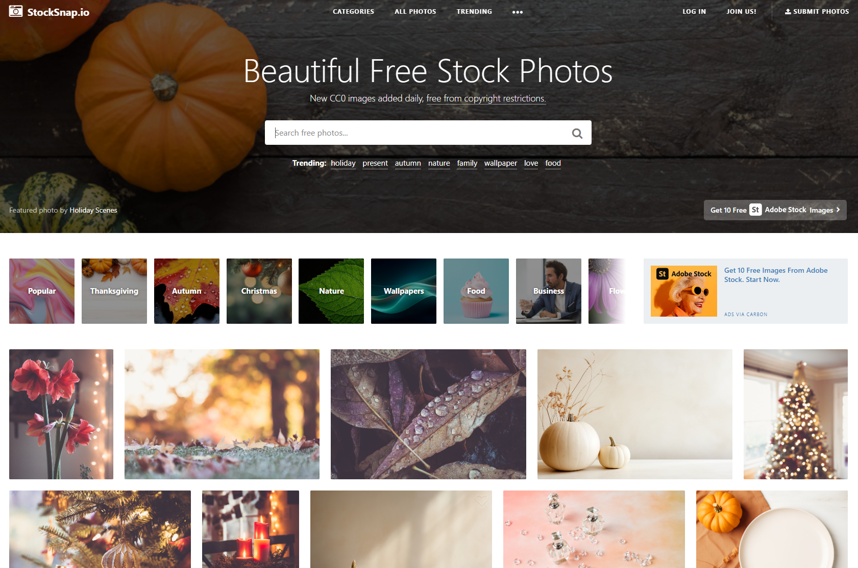 여섯 번째로 소개해드리는 사이트는 스톡스냅입니다. 로그인 없이 상당한 양의 상업적, 비상업적 이미지를 다운로드해서 사용할 수 있습니다. 영문으로 검색해야 하는 아쉬움이 있지만 고해상도 이미지를 중심으로 배포되고 있기 때문에 높은 해상도의 무료 이미지를 찾으신다면 스톡스냅이 많은 도움이 될듯합니다.