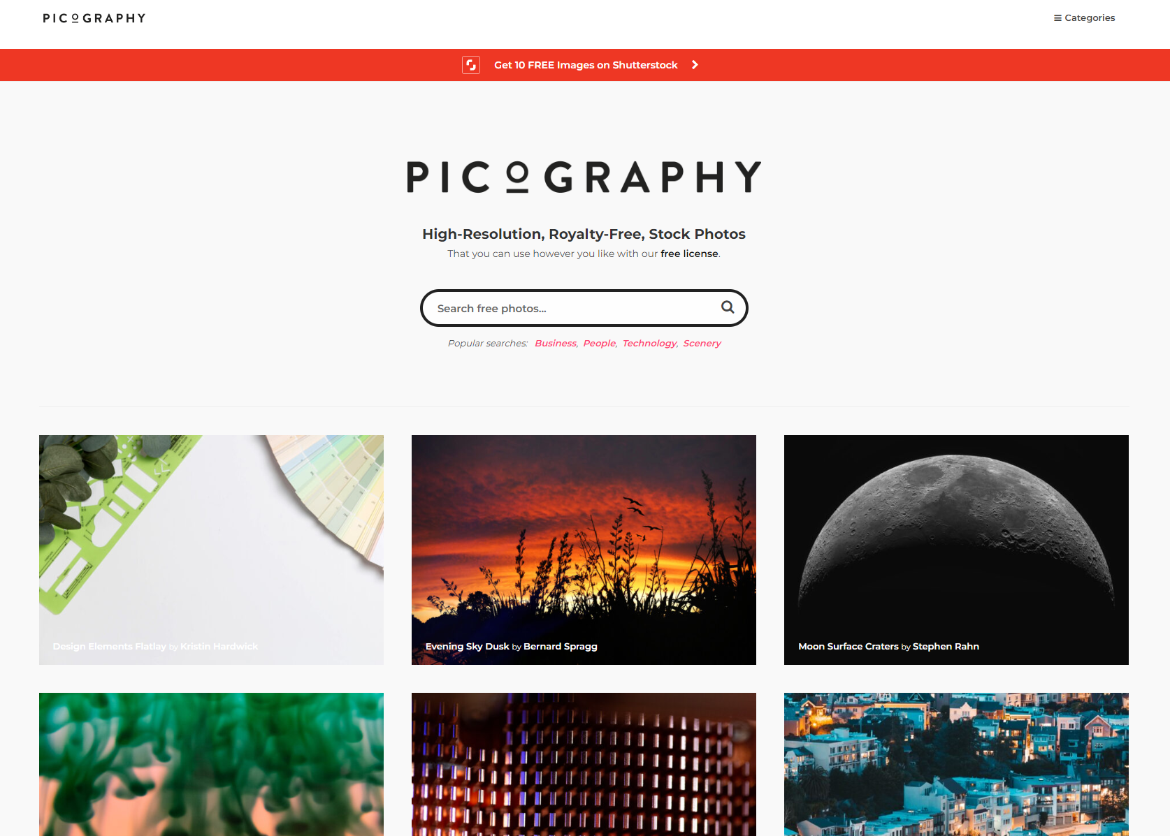 일곱 번째로 소개해드리는 사이트는 피코그래피입니다. 고해상도의 무료 이미지를 찾고 있다면 피코그래피도 적절한 대안이 될 수 있을 것 같습니다. 다른 사이트와 마찬가지로 상업적, 비상업적인 용도로 사용이 가능합니다.