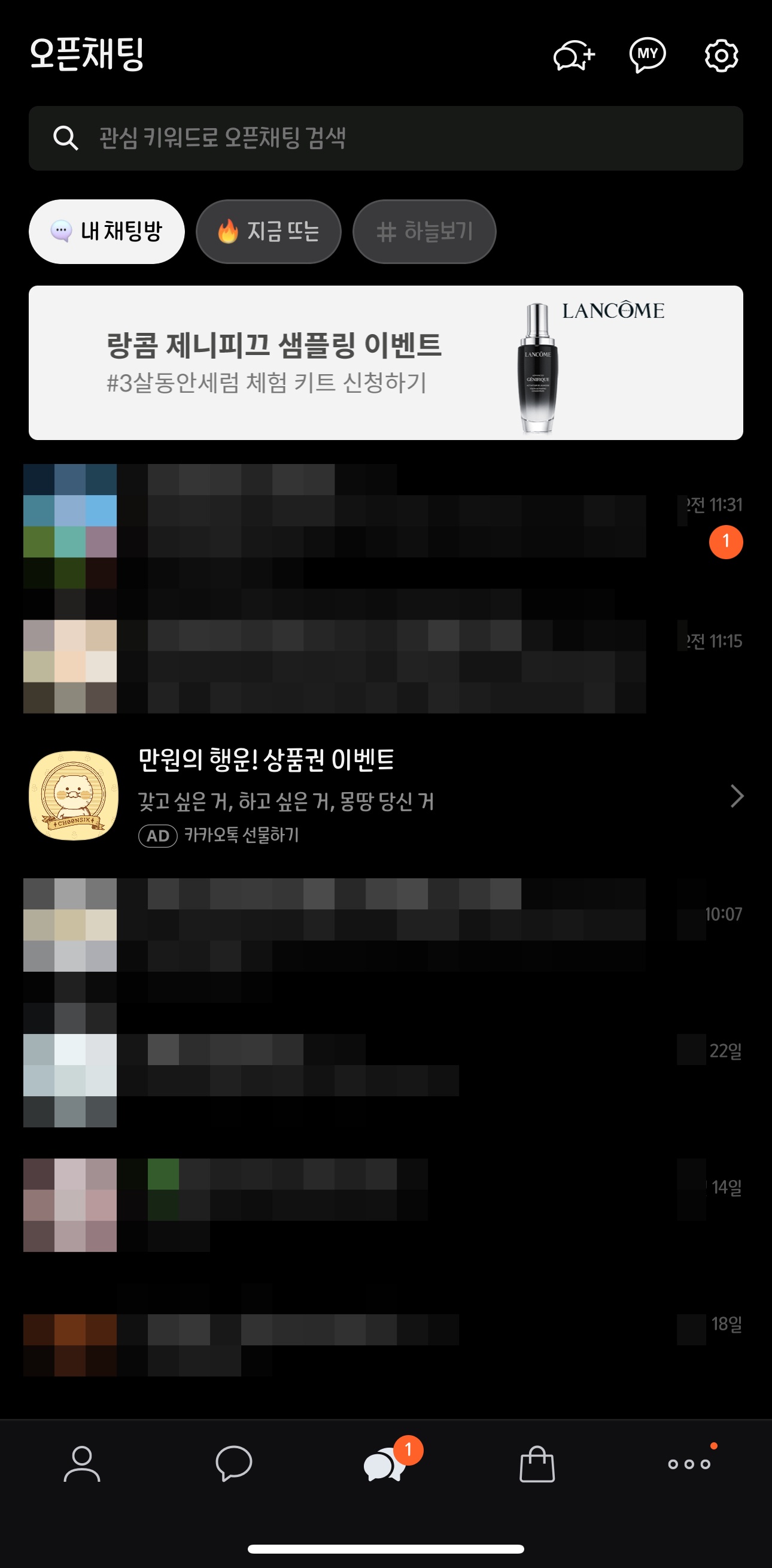 사실 오픈 채팅이 새로운 탭으로 나누어진 이유 중 하나는 광고 때문이 아닐까 하는 생각이 듭니다. 기존에는 광고가 오픈 채팅방 상단에만 노출이 되었던 반면, 분리가 된 이후부터는 오픈 채팅방 목록 사이에 광고가 노출되고 있는 것을 확인할 수 있었기 때문입니다. 광고의 노출과 관련된 부분은 카카오톡 오픈 채팅을 이용하는 사람마다 호불호가 갈릴 듯합니다.