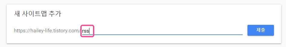 그러면 새 사이트맵을 추가하라고 합니다. 이제 여기에 rss와 sitemap.xml을 입력할 것입니다.