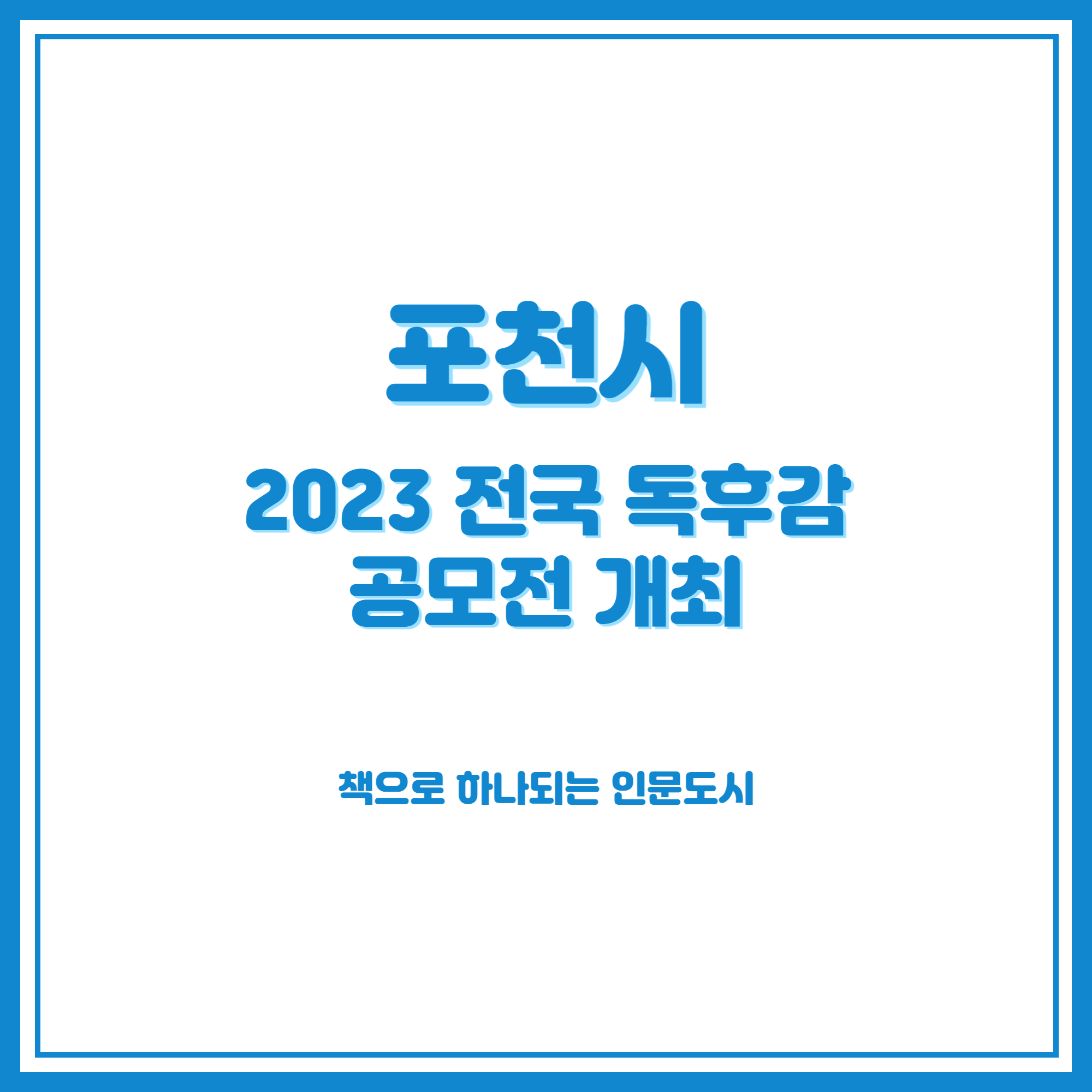 포천시는 시승격 20주년을 기념하여 '책으로 하나 되는 인문도시-포천' 2023 올해의 책 6권을 선정, 전국 초등학생부터 성인까지 누구나 참여 가능한 전국 독후감 공모전을 개최합니다. 관심 있으신 분들을 위해 공고문을 바로 볼 수 있는 사이트를 넣어두겠습니다.