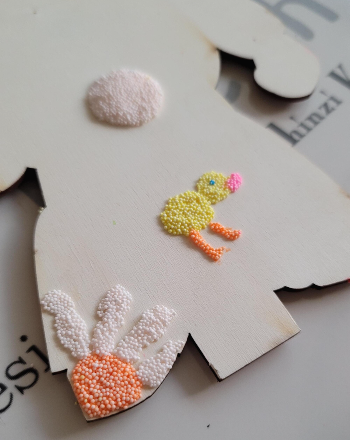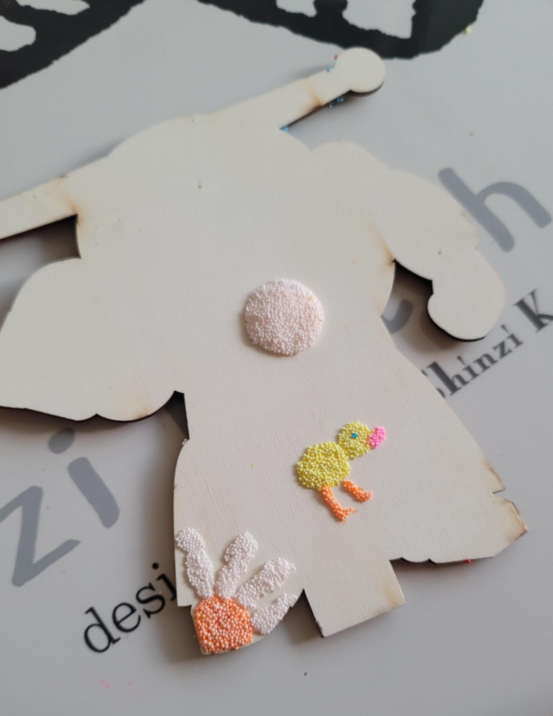 앞면을 다 붙이고 남은 폼클레이 들은 뒷면에 원하는 모양으로 만들어 붙여보기도 합니다. 놀이가 너무 빨리 끝나면 재미가 없으니까요. 제가 구석에 꽃이라고 만들어 붙여놓았는데, 쪼꼬맹이가 보더니 공룡 발가락이랍니다. 다행히도 병아리는 맞췄습니다. 4살 둘째 아이는 색칠을 하는 등 그림을 채우는 것은 잘하는데, 직접 무언갈 만들거나 그려보라고 하면 아직 조금 힘들어합니다. 아직은 어린아이 이기 때문에 이런 기회가 생기면 엄마가 먼저 시범을 보여준답니다.